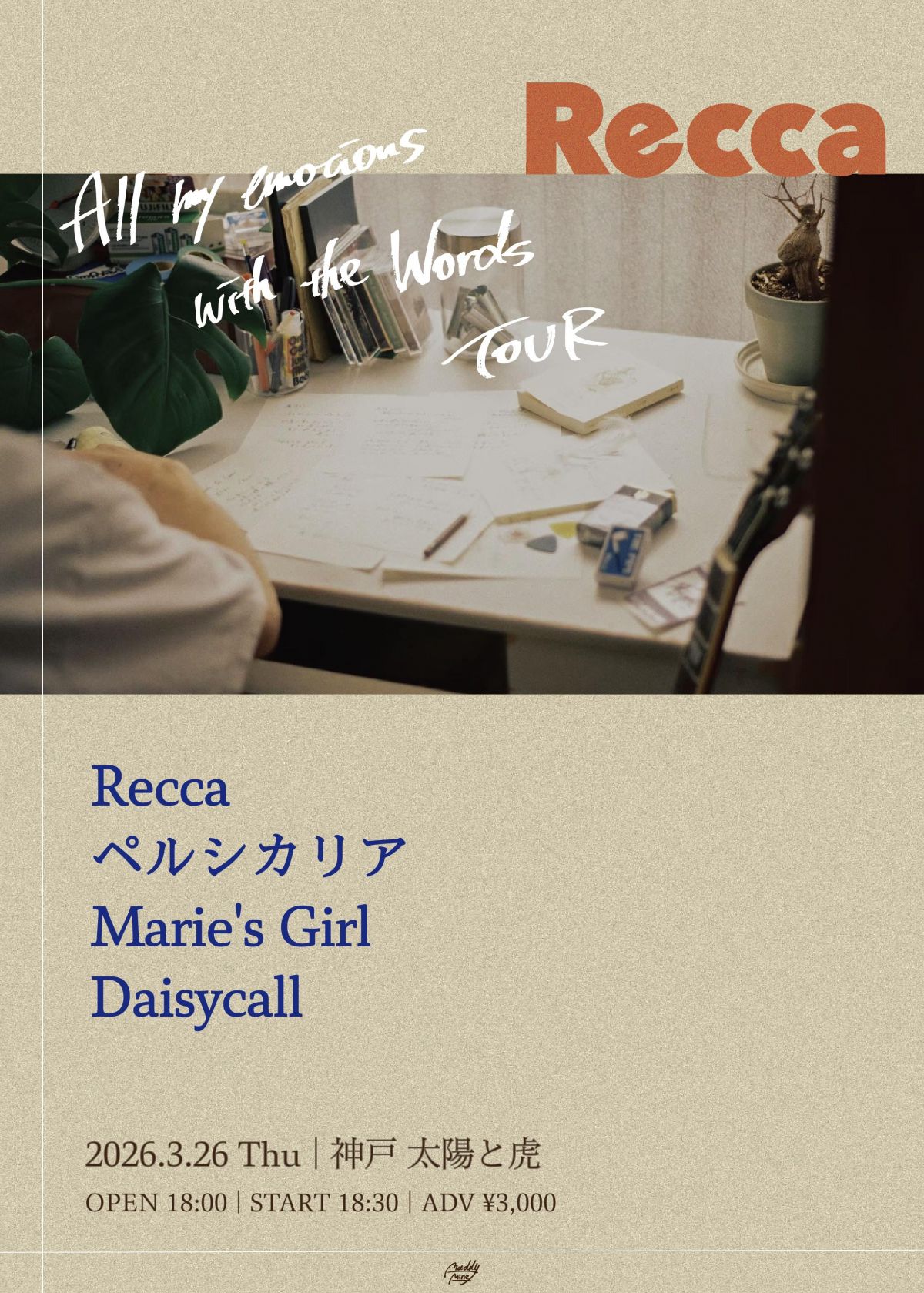 Recca 1st mini album 『Emotional Words』release tour "All my emotions with the Words TOUR" 神戸公演出演決定
